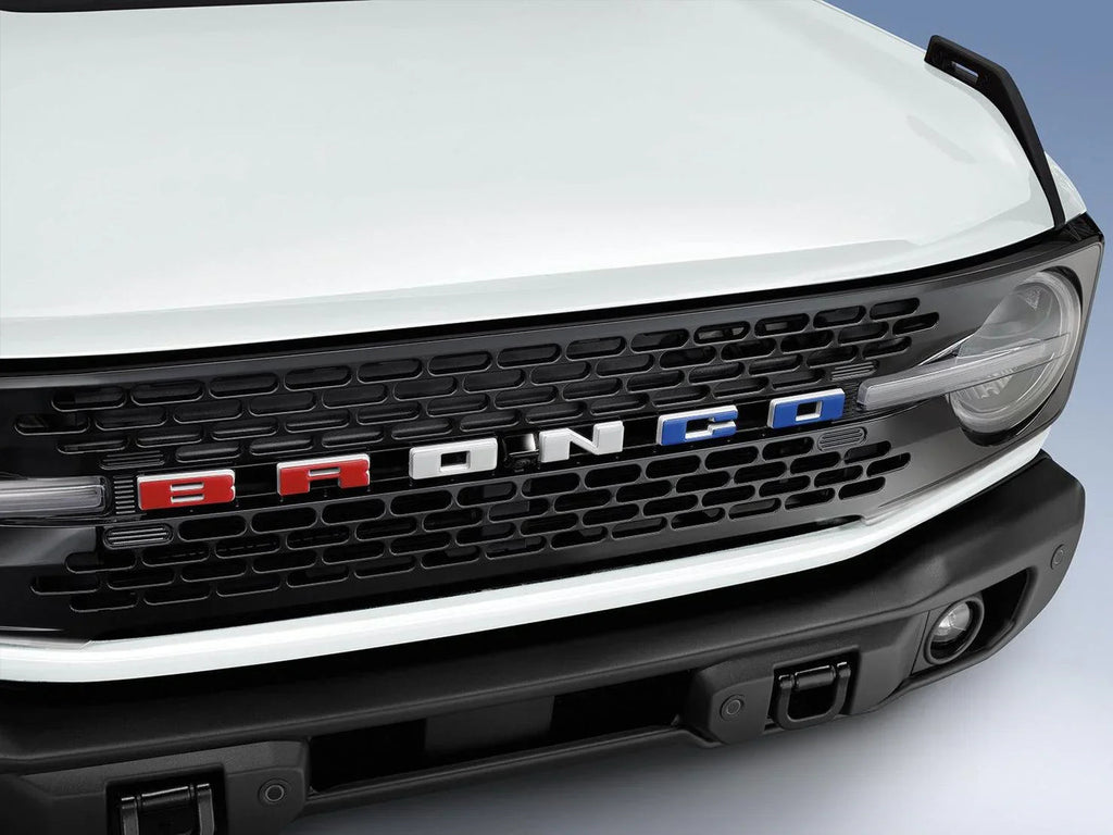 Add a new look to your Bronco with these stylish Grille Letter emblems. Kit features raised BRONCO letters that fit over the existing Grille letters.