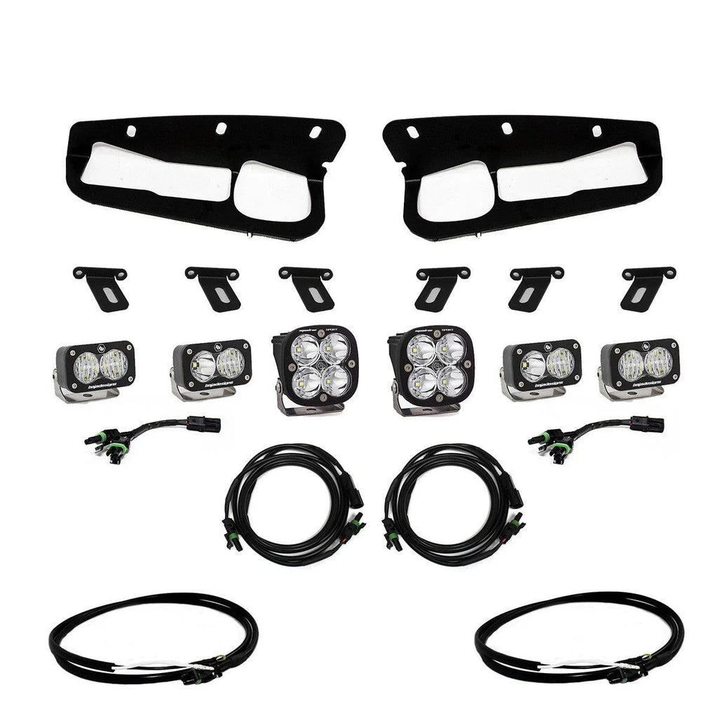 Style, fitment, performance, and ease of installation. This kit is designed for the Ford Bronco enthusiast that is looking to light up the trail with ample light, and differentiate yourself from the pack. This kit specifically utilizes a set of S2 Sports in Driving/Combo, a set of S2 Sports in Wide Cornering, and a set of Squadron Sports in Spot. The brackets used to mount this performance oriented light setup ensure no cutting or drilling, and the wiring that is included will allow for the lights to be operated from a toggle switch in the cab. This is a comprehensive kit and does not require any additional parts for installation.