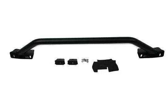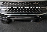 DV8 Offroad has designed a tubular bull bar for the Bronco’s factory modular steel bumper as an alternative for the OEM bull bar. It sits much lower in front of the grille than the OEM version, giving it a low profile appearance. The tube features 2 adjustable light mounts that allow for LED lighting to be mounted above or below the bar. Lighting options include mounting up to a 20-inch light bar above or below the tube, or an LED pod light on each of the 2 tabs.