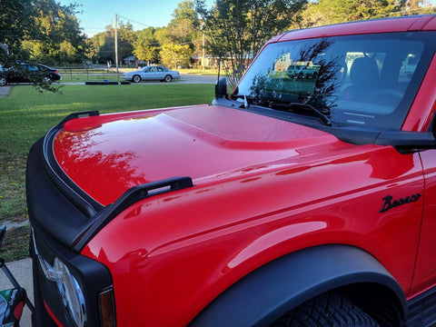 Long before the Bronco came out it has been customary for off roaders to put matte material on their hood to cut out glare. This glare can come from the sun or lights mounted above the vehicle's hood.