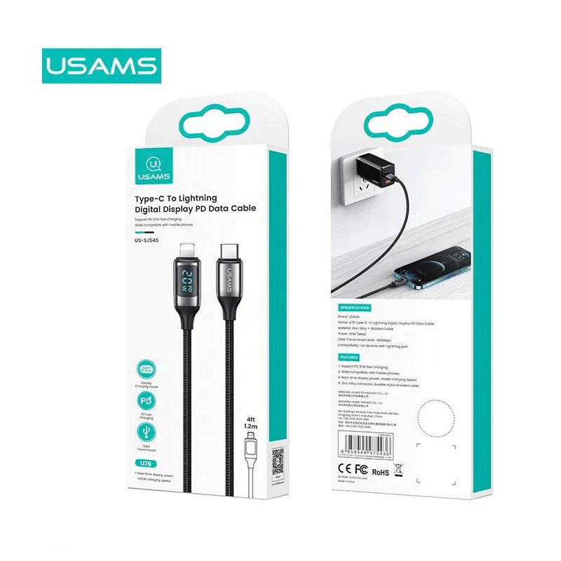 USAMS USB-C Port Cable to Lightning or USB-C with LCD